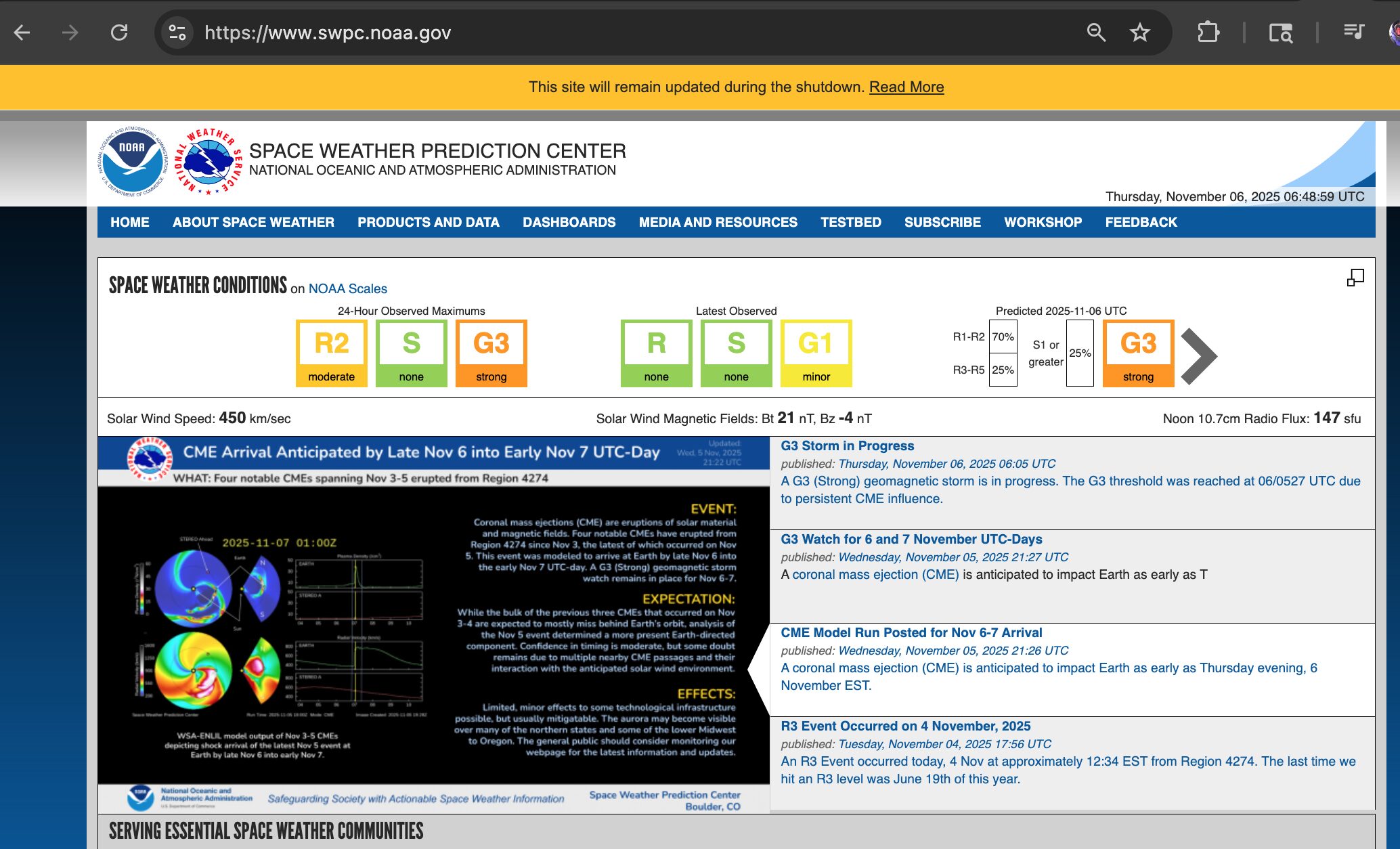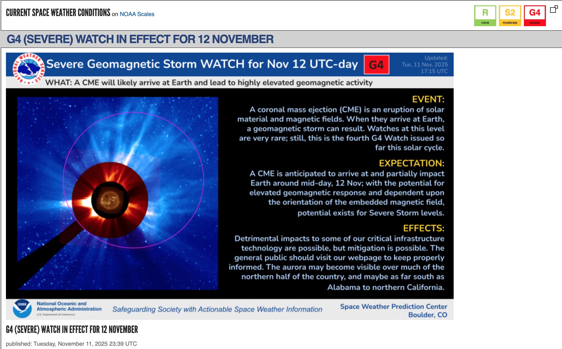 Current G4 storming, severe level. For those like me who are in very cloudy conditions- We may get another very strong burst in an hour, and the clouds may clear out at that point for a couple hours. We may get some serendipity. For those like me who are in very cloudy conditions- We may […]